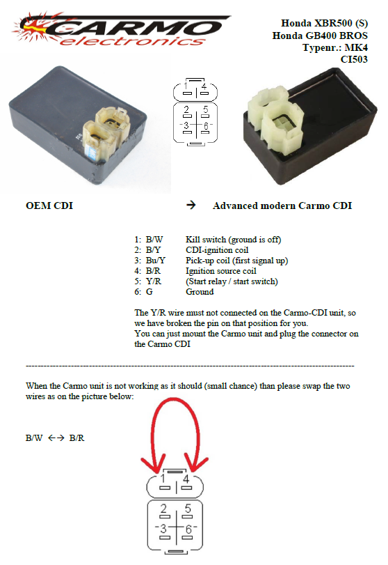 Model: CARI-CDI02A-XBR500 Honda XBR500 CDI